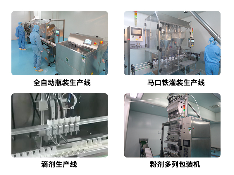 公司按照GMP標(biāo)準(zhǔn),建成了中藥提取車間、固體制劑、液體制劑以及益生菌車間。其中30萬級標(biāo)準(zhǔn)潔凈車間8000多平米,片劑、硬膠囊劑、軟膠囊、顆粒劑、粉劑、膏劑、滴劑、液體飲料、軟糖、配制酒等多條生產(chǎn)線,一次性通過了保健食品GMP認(rèn)證及營養(yǎng)食品的SC認(rèn)證。